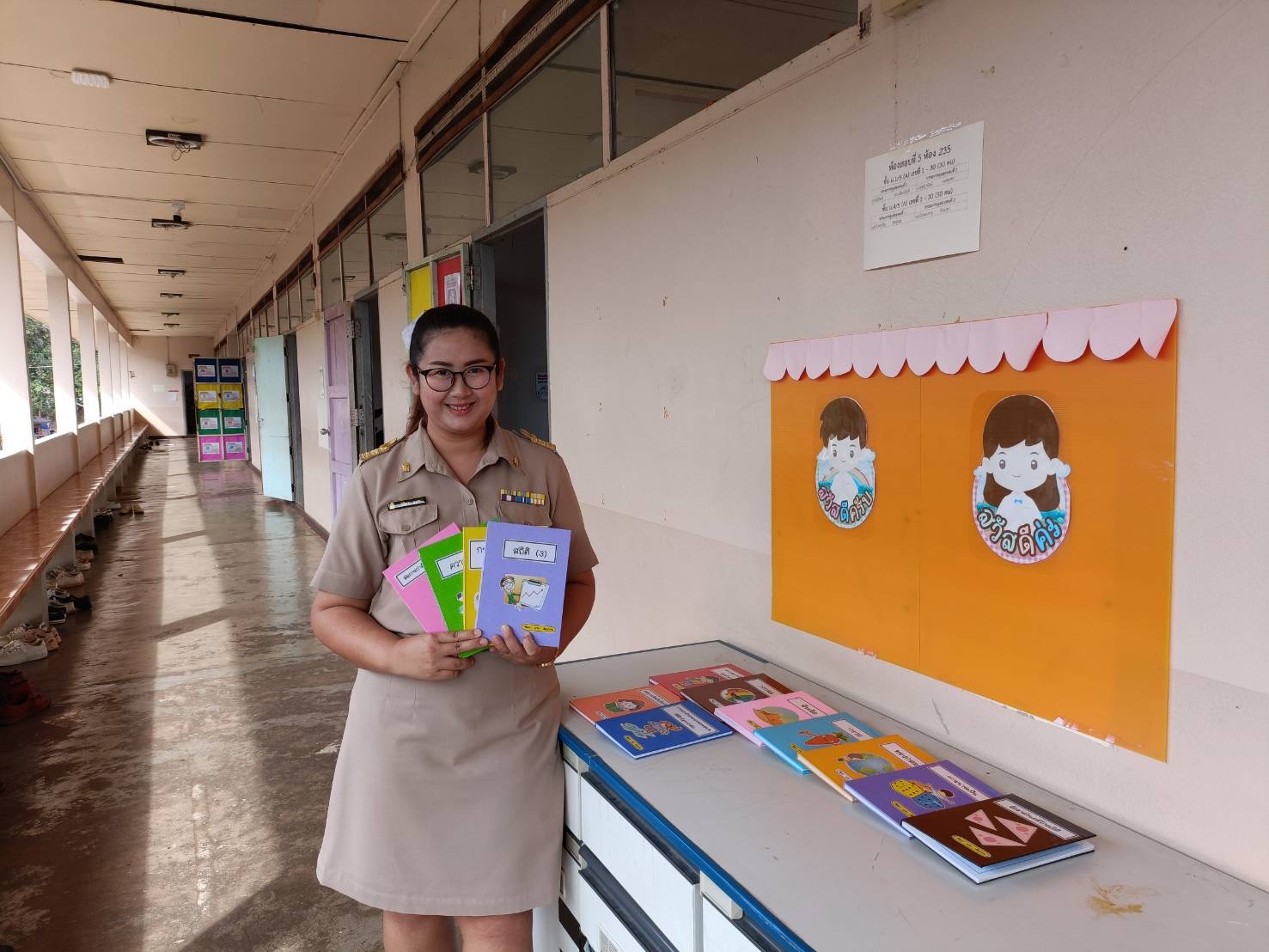 ครูจัดมุมสื่อในห้องเรียนให้น่าสนใจ ให้นักเรียนที่สนใจเข้ามาอ่านและยืมไปอ่านที่บ้านได้ตามความสนใจ