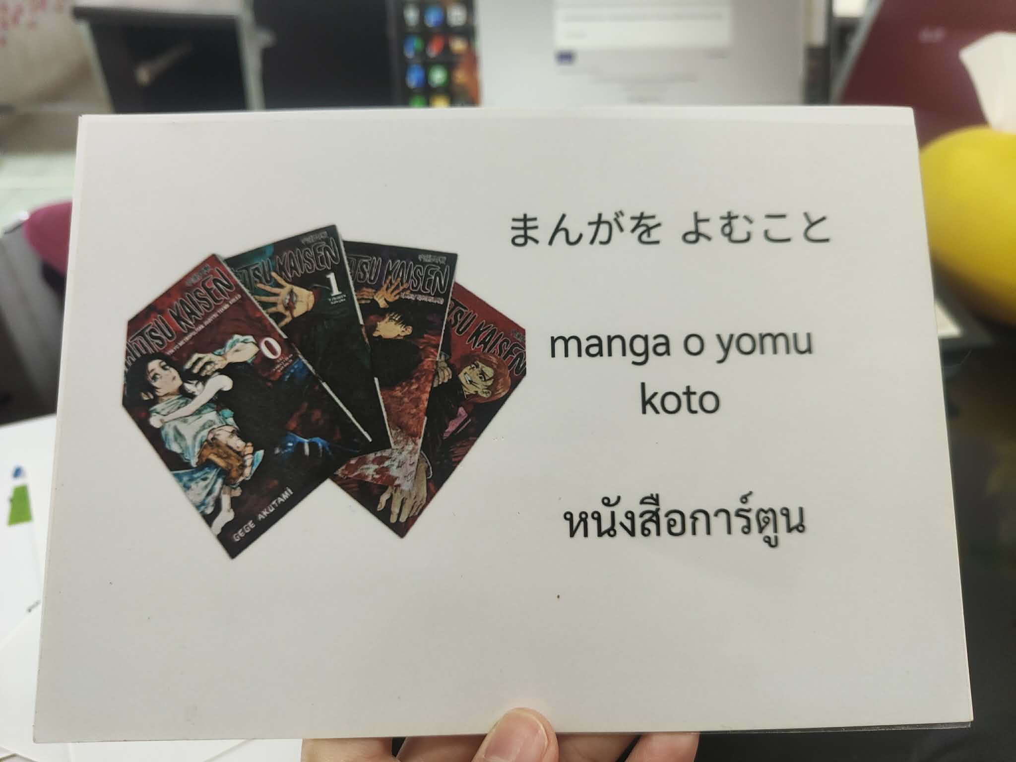 "ขั้นตอนที่ 1 การเตรียมความพร้อม 1.ครูเตรียมบัตรคำศัพท์ภาษาญี่ปุ่น (ประกอบด้วย คำศัพท์ภาษาญี่ปุ่น / คำอ่าน / ความหมาย / ภาพประกอบ) 2.แบ่งนักเรียนออกเป็นกลุ่ม กลุ่มละ2-3คน ให้มีจำนวนสมาชิกใกล้เคียงกัน 3.ครูอธิบายกติกติกาและเป้าหมายของกิจกรรมให้นักเรียนเข้าใจ ขั้นตอนที่ 2 การดำเนินกิจกรรม 1.ครูแจกบัตรคำศัพท์ให้แต่ละกลุ่ม กลุ่มละจำนวนเท่ากัน 2.นักเรียนช่วยกันอ่านคำศัพท์ ออกเสียง และอธิบายความหมายของคำศัพท์ในกลุ่ม ครูอาจให้แต่ละกลุ่ม - จับคู่คำศัพท์กับภาพ - เรียงคำศัพท์ตามหมวดหมู่ (เช่น อาหาร สถานที่ กิจวัตรประจำวัน) - สร้างประโยคง่าย ๆ จากคำศัพท์ในบัตร 3.ตัวแทนกลุ่มออกมานำเสนอคำศัพท์หรือประโยคหน้าชั้นเรียน ขั้นตอนที่ 3 การสรุปและประเมินผล 1.ครูและนักเรียนร่วมกันสรุปคำศัพท์ที่ได้เรียนรู้ 2.ครูซักถามเพื่อตรวจสอบความเข้าใจ เช่น การออกเสียง ความหมาย และการนำไปใช้ 3.ประเมินผลจากการมีส่วนร่วม การทำกิจกรรมกลุ่ม และการนำเสนอหน้าชั้นเรียน"