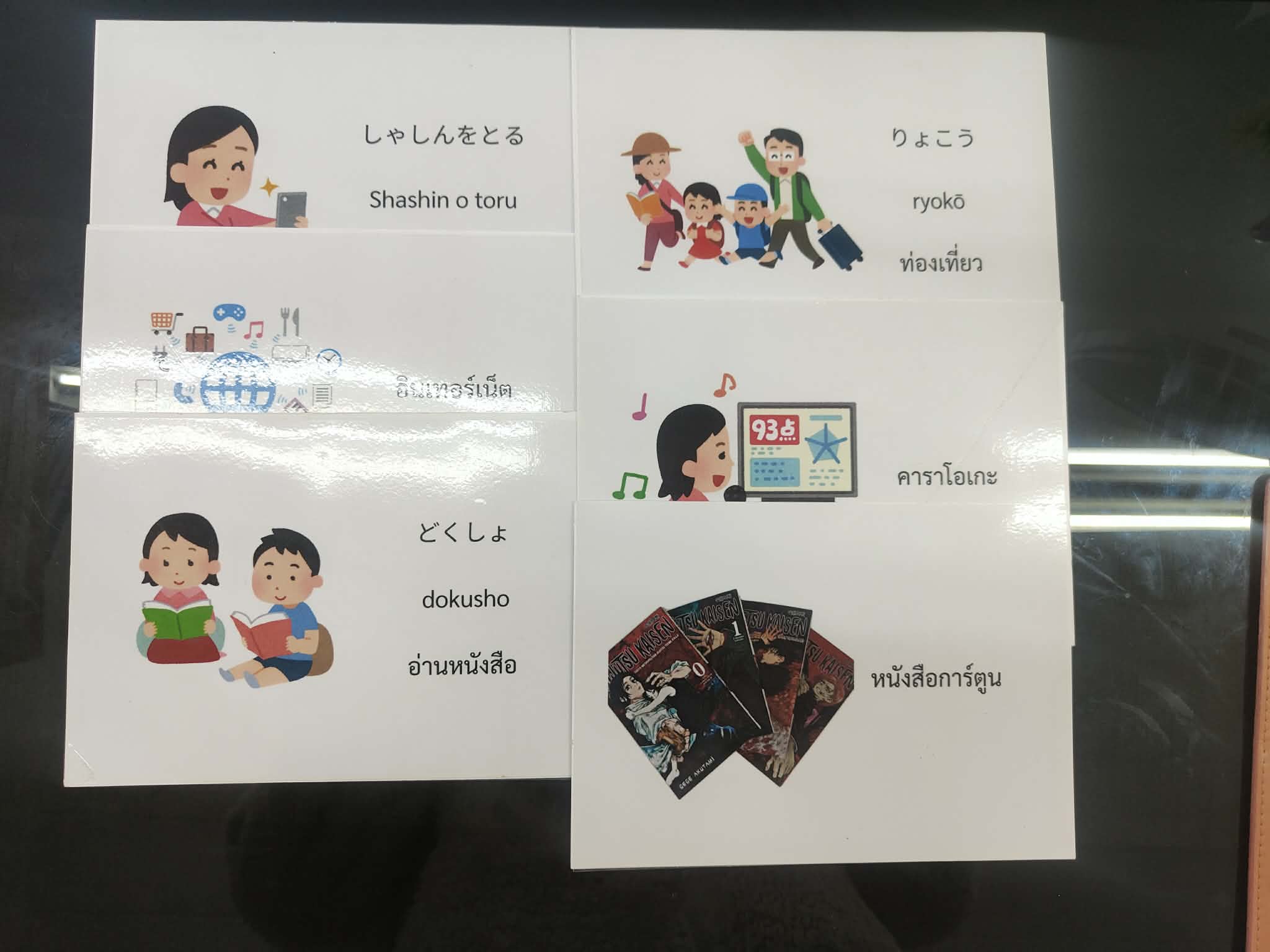 "1.เพื่อให้นักเรียน พัฒนาทักษะด้านภาษาญี่ปุ่น ในด้านคำศัพท์ ความหมาย และการออกเสียงได้อย่างถูกต้อง 2.เพื่อส่งเสริมให้นักเรียน เรียนรู้คำศัพท์ภาษาญี่ปุ่นผ่านกิจกรรมเชิงปฏิบัติ (Active Learning) อย่างสนุกสนาน 3.เพื่อให้นักเรียนสามารถ เชื่อมโยงคำศัพท์กับสถานการณ์ในชีวิตประจำวัน และนำไปใช้ในการสื่อสารเบื้องต้นได้ 4.เพื่อพัฒนาทักษะด้าน การทำงานเป็นกลุ่ม การคิดวิเคราะห์ และการสื่อสาร ผ่านกิจกรรมจากบัตรคำศัพท์ 5.เพื่อสร้างเจตคติที่ดีต่อการเรียนรู้ภาษาญี่ปุ่น และเพิ่มแรงจูงใจในการเรียนภาษา"