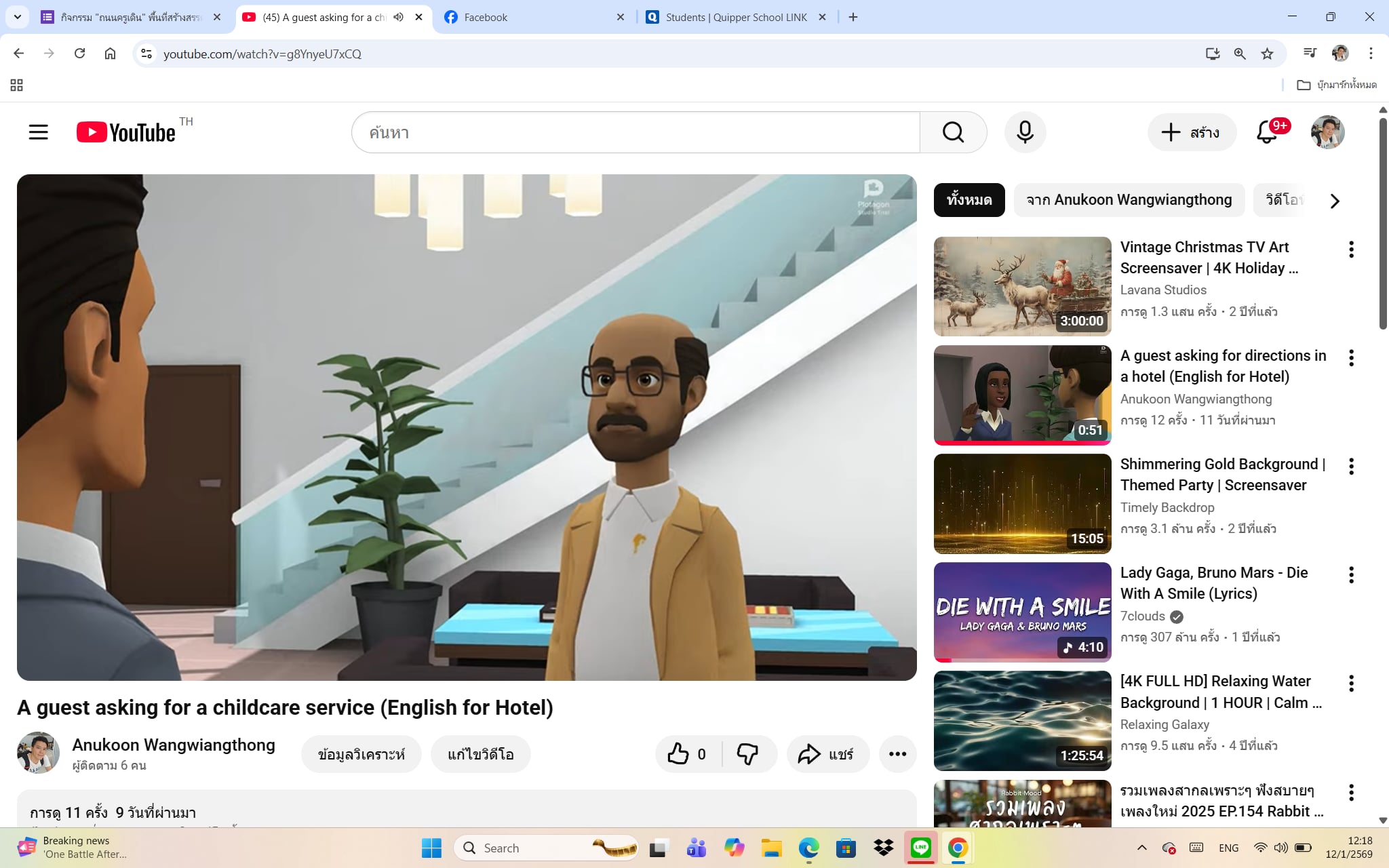 "1. นักเรียนเข้าสู่ระบบการทดสอบผ่าน Google Form จากลิงก์ที่ครูส่งให้ 2. นักเรียนทำแบบทดสอบท้ายบทเรียน โดยเป็นแบบฝึกทักษะทางด้านภาษาอังกฤษ 3. ในส่วนของทักษะการฟัง นักเรียนจะสามารถรับชมคลิปวีดิโอแอนิเมชั่นจำลองสถานการณ์ต่าง ๆ ในแต่ละส่วนของโรงแรมจาก YouTube ที่ผู้สอนได้ฝังไว้บน Google Form โดยเป็นการสร้างเนื้อหาจากเครื่องมือปัญญาประดิษฐ์เชิงสร้างสรรค์ (Generative AI) ซึ่งผู้สอนเลือกใช้ ChatGPT ในการสร้างและปรับแต่งเนื้อหาบทสนทนา จากนั้นจึงนำบทสนทนาที่ได้ไปเข้าโปรแกรม Plotagon ซึ่งเป็นเครื่องมือปัญญาประดิษฐ์จัดทำแอนิเมชั่นสำเร็จรูป 4. นักเรียนทำแบบฝึกทักษะการฟังเพื่อความเข้าใจ 2-3 ครั้ง โดยการรับชมวีดิโอครั้งที่ 1 จะเป็นการรับชมและรับฟังเพื่อจับประเด็นสำคัญ ส่วนการรับชมครั้งที่ 2 และ 3 จะเป็นการจับใจความสำคัญ โดยนักเรียนสามารถเล่นซ้ำได้มากกว่า 3 ครั้ง ทั้งนี้ขึ้นอยู่กับความสามารถทางด้านการฟังของนักเรียน 5. เมื่อนักเรียนทำแบบทดสอบเสร็จแล้ว สามารถกดส่งคำตอบ และทราบคะแนนในภาพรวมของแบบฝึกทักษะท้ายบทเรียนได้ทันที"